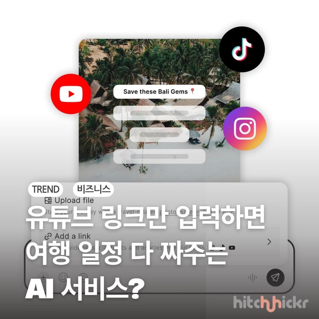 AI 여행 서비스 마인드트립은 유튜브, 틱톡, 인스타그램 링크를 입력하거나 스크린샷을 업로드하는 것만으로 여행 일정을 만들 수 있는 신기능을 발표했습니다.
